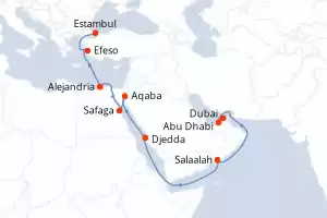 Itinerario : Dubai, Abu Dhabi, Salaalah, Djedda, Aqaba, Safaga, Alejandria, Efeso, Estambul