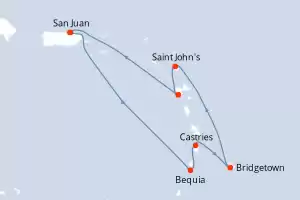 Itinerario : San Juan, Bequia, Castries, Bridgetown, Saint John's, Basse-Terre (Guadalupe), San Juan