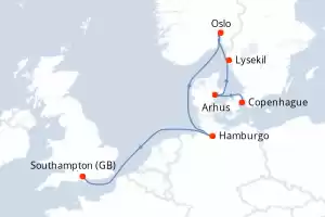 Itinerario : Copenhague, Arhus, Lysekil, Oslo, Hamburgo, Southampton