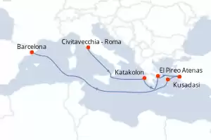 Itinerario : Civitavecchia - Roma, Katakolon, El Pireo Atenas, Kusadasi, Mykonos, Barcelona
