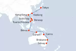 Itinerario : Tokyo, Keelung, Hong Kong, Subic bay, Boracay, Puerto Princesa, Benoa, Darwin, Cairns, Brisbane, Sidney