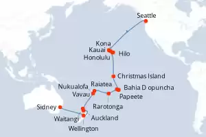 Itinerario : Seattle, Kauai, Honolulu, Hilo, Kona, Christmas Island, Papeete, Bahia D opuncha, Raiatea, Rarotonga, Vavau, Nukualofa, Waitangi, Auckland, Wellington, Sidney