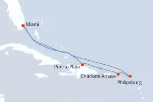 Itinerario : Miami, Philipsburg, Charlotte Amalie, Puerto Plata, Miami