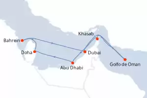Itinerario : Dubai, Golfo de Oman, Khasab, Abu Dhabi, Doha, Bahrein, Dubai
